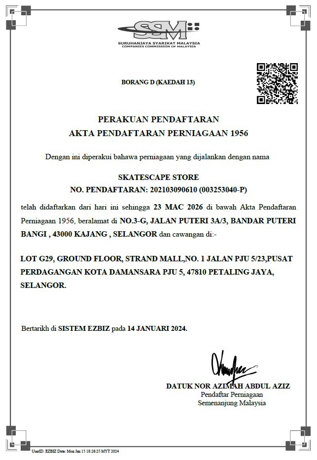 At SkatEscape, we don't just sell skates; we cultivate a community of skaters through our comprehensive skating classes catering to both beginners and professionals. Established in 2015 by avid Malaysian local skaters, SkatEscape is a haven for those seeking a clear path into the world of skating, pronounced as Skate-Escape for a reason—because it's not just about the activity, it's an escape from the ordinary.